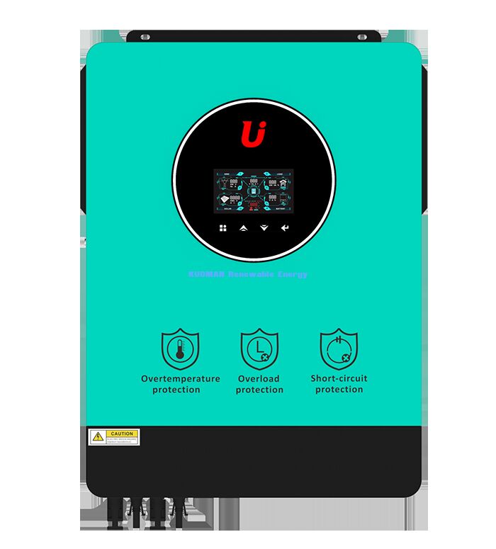 This 10KW hybrid energy storage inverter combines robust power with intelligent management. It features a user-friendly circular display with a prominent red "U" logo for easy monitoring and control. Its core safety is ensured by a triple-protection system against over-temperature, overload, and short circuits. Key technical parameters, as detailed in the spec sheet, include:Power:​ Rated output of 10200W/10200VA.
